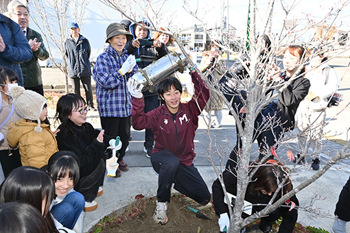 10年前の開所時に、米国大使館より贈呈された友好のシンボル「ハナミズキ」の木の下に、子供たちや住民の方々が10年後の自分に向けて書いたメッセージを入れて埋めたタイムカプセルを掘り起こし、思い出のカードを手に、当時の気持ちを振り返りながら、さらに10年後へ向けた新たなコメントを寄せてくださいました。