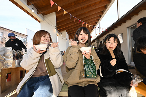 2015年12月に岩手県野田村に建設された野田村アムウェイハウスは、地域の交流拠点として、また事業者の再建を支える場として、コミュニティホールと店舗エリアから構成されています。住民の皆さまがお祭りを行えるよう設けられた大屋根のもと、開所翌年の2016年以降、野田村商工会様と入居事業者の皆さまが協力し、「野田村プチよ市」を定期的に開催。毎回多くの方々が訪れる、地域に根付いたイベントへと成長しています。